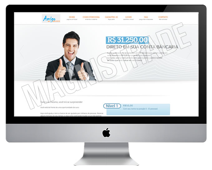 O sistema foi totalmente projetado para auxiliar qualquer pessoa a obter ajuda de várias outras pessoas em todo o Brasil. Para ingressar, você precisa encontrar um patrocinador, que receberá sua doação, clicar em “Cadastrar”, preencher seus dados, e realizar um depósito de R$10,00 na conta de 5 pessoas que aparecerão na página de depósitos do sistema.