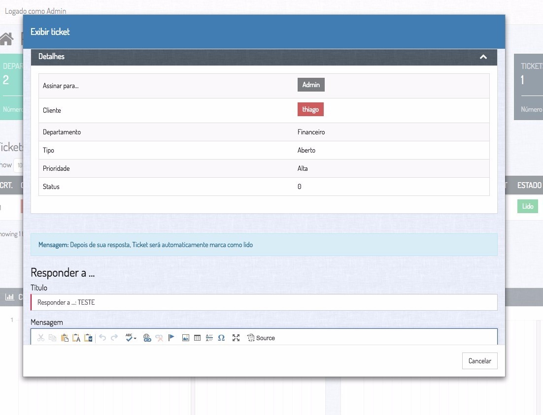 Script de Ticket Suporte é um sistema desenvolvido em PHP, que pode ser utilizado para atendimento de clientes, um sistema de atendimento ao cliente elegante para lidar com as solicitações de ticket. pode ser controlado por departamentos e equipes! Assim eliminando problemas futuros de comunicação e melhorando o atendimento ao cliente e o ajudando a resolver problemas pertinentes.