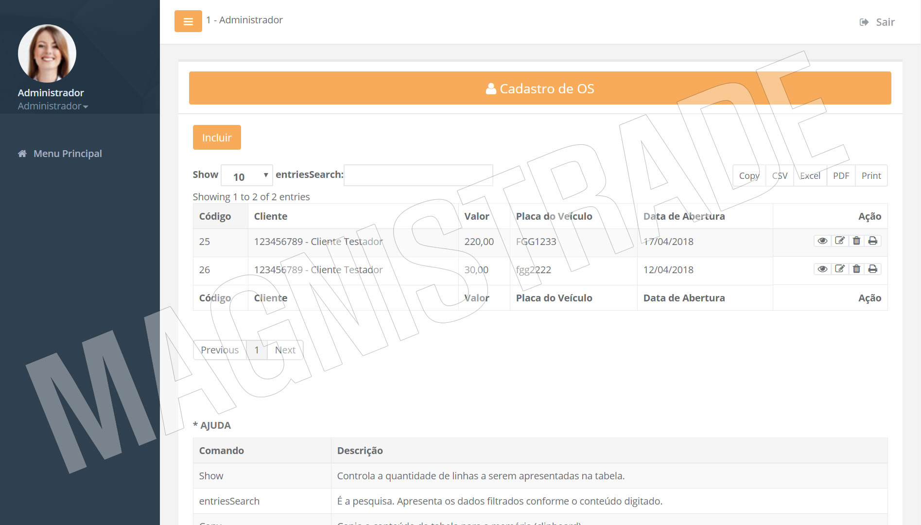 – Você pode incluir os dados cadastrais (cnpj, nome, endereço, etc) da oficina para evitar de ter de digitar a cada OS.